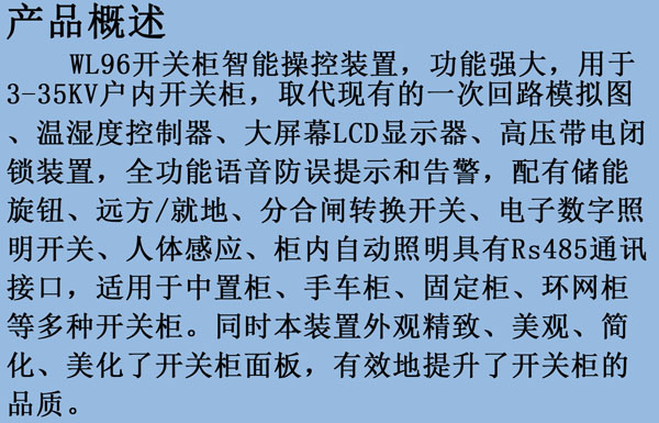 [ 上一個產品: WL97開關柜智能操控裝置 ] [ 下一個產品: WLY電力系統過電壓抑制裝置 ]